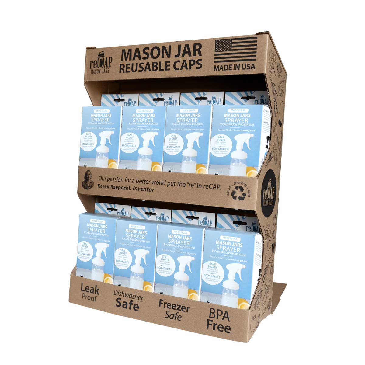 We are a woman-owned, small business inspired by reusing Mason jars. reCAP is made in our founders hometown of Erie, PA. Not just Made in the USA, most of reCAP’s supply chain is within a 100-mile radius where our caps are produced, assembled and fulfilled. We are reliable and lean!